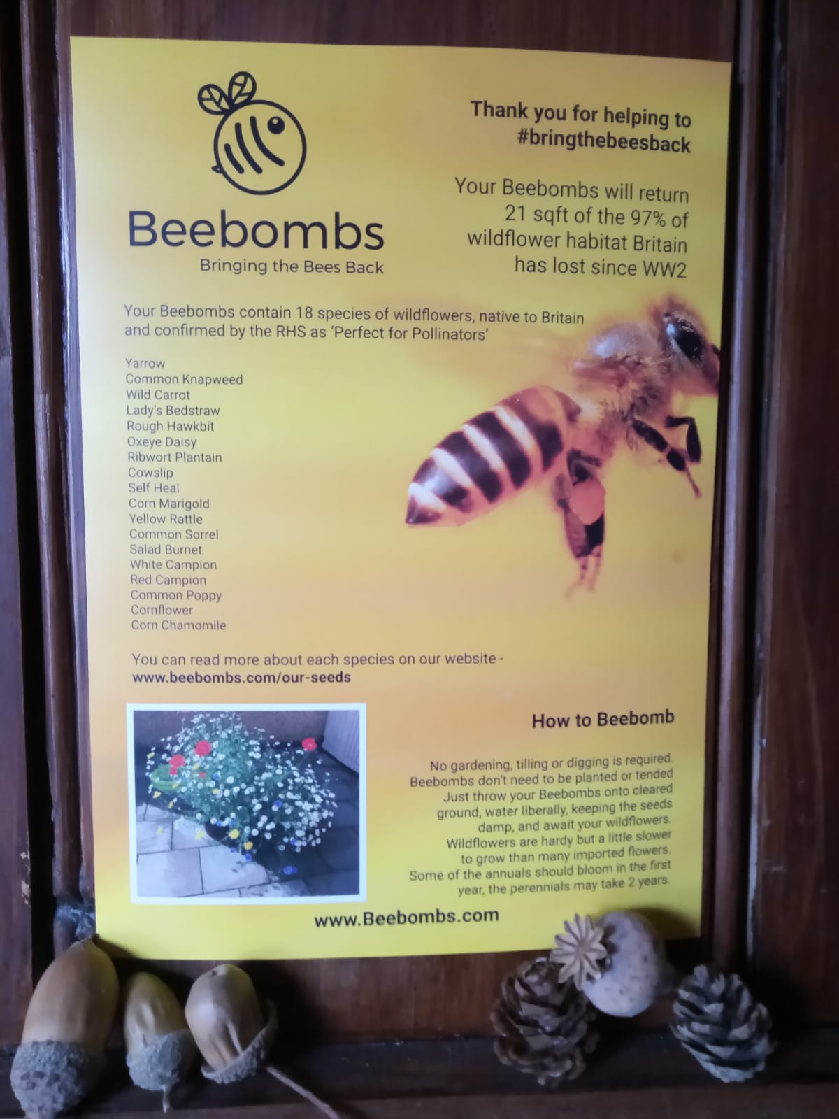 We now stock Beebombs on our stall at the Heart of the Shires shopping village, and online. Handmade in Dorset, Beebombs are native wildflower seedballs that produce fantastic wildflower habitats for bees and other pollinators. Help bring the bees back!